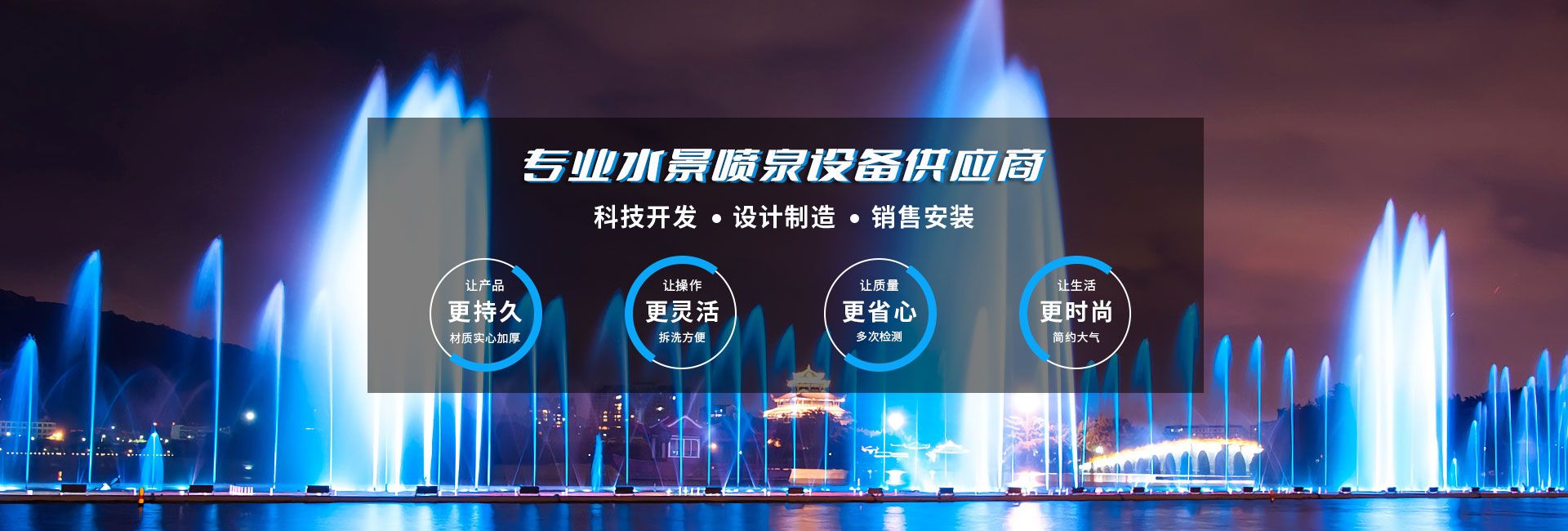無錫市水舞秀環(huán)境工程有限公司,位于美麗的太湖之濱,著名的陶都--宜興。342省道附近,交通十分便利。本公司立志于弘揚水文化,做好水文章,使噴泉水景集聲、光、水三維一體,營造出更奇、更新、更美的人文景觀。公司在全國承接了大型音樂噴泉、程控噴泉、旱式程控噴泉等大型工程,從工程設計到制作、安裝、調試,提供一整套完善的服務體系只要客戶想到,我們一定能做到、做好。水舞秀噴泉匯聚了噴泉界一批有名望的設計專家,培養(yǎng)和造就了一大批富有實際經驗,誠實守信、吃苦耐勞的高素質員工隊伍...
